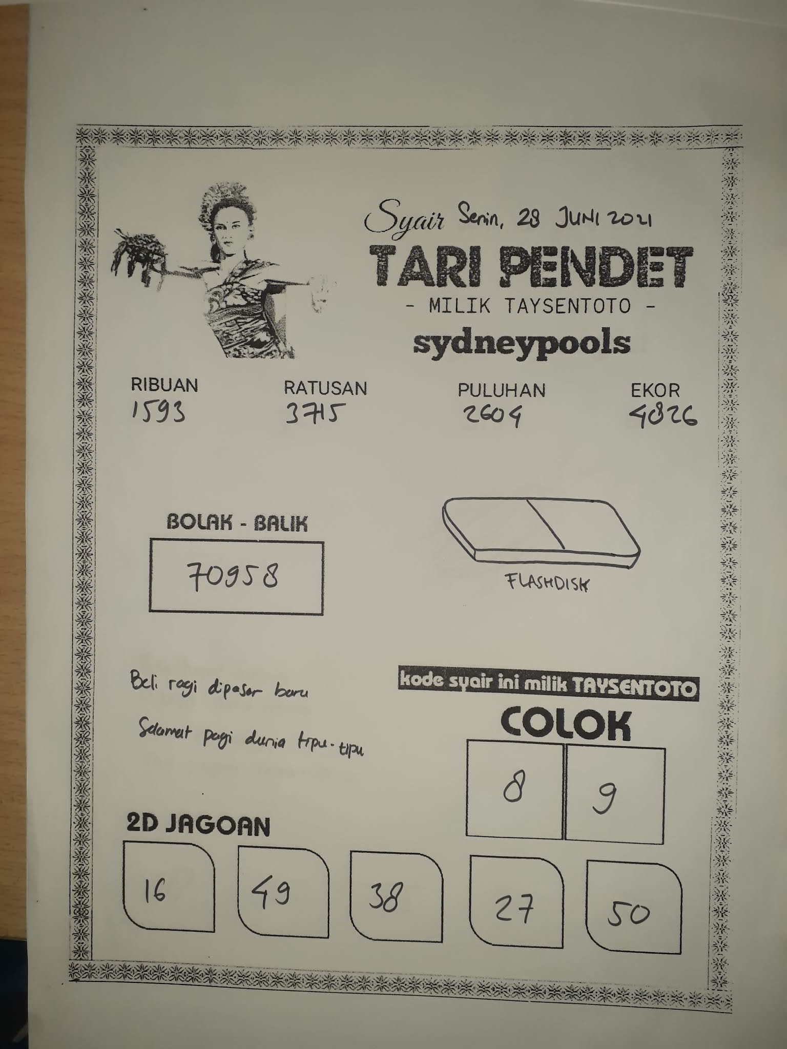 syair nyi plered sydney senin 28 juni 2021 SYAIR NYI PLERET